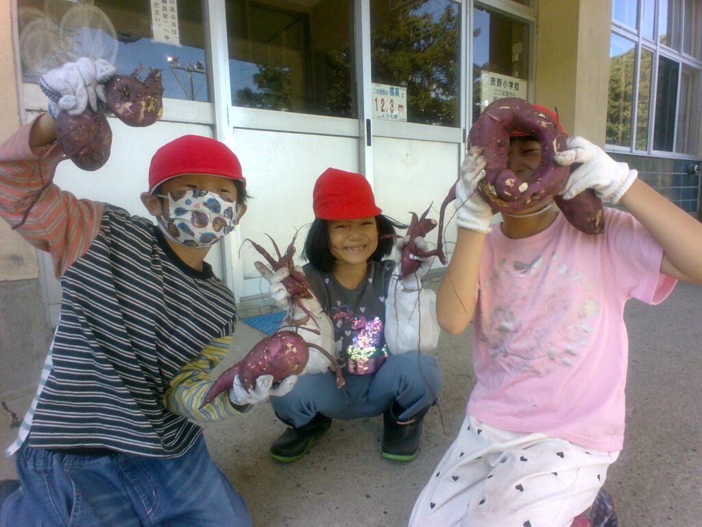 学級園で、今年育ててきたさつまいもを収穫しました。大きなさつまいもを掘り出し満面の笑みを見せてくれました。