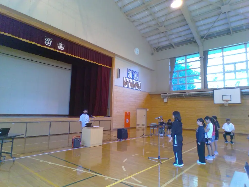 児童総会では、前期の活動で良くできた取組やより良くしてほしい取組を提案していました。各学級からは、続けてほしい取組を理由を付けながら伝えていました。最後に、後期児童会役員の認証式を行い、新役員から代表としての意気込みを、気持ちを込めて発表していました。